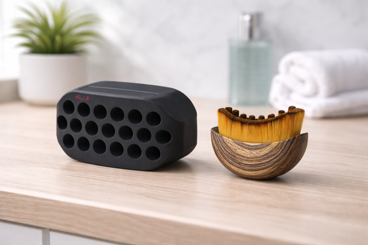 This three-piece system works synergistically to target the key areas that define a sculpted, lifted face. The Jaw Trainer strengthens and defines your jawline through precision resistance training, creating the sharp contours that frame your face. The Lymphatic Drainage Brush simultaneously reduces puffiness and enhances your natural glow by promoting circulation and lymphatic flow—the result is a more awake, refined appearance. Finally, the Facial LIFT Mask tightens and rejuvenates the skin, boosting elasticity and firmness for that coveted lifted effect. Together, these tools address the complete facial transformation: definition, clarity, and lift. Whether you're looking to enhance your natural features or achieve a more dramatic transformation, this bundle delivers visible, lasting results that speak for themselves.